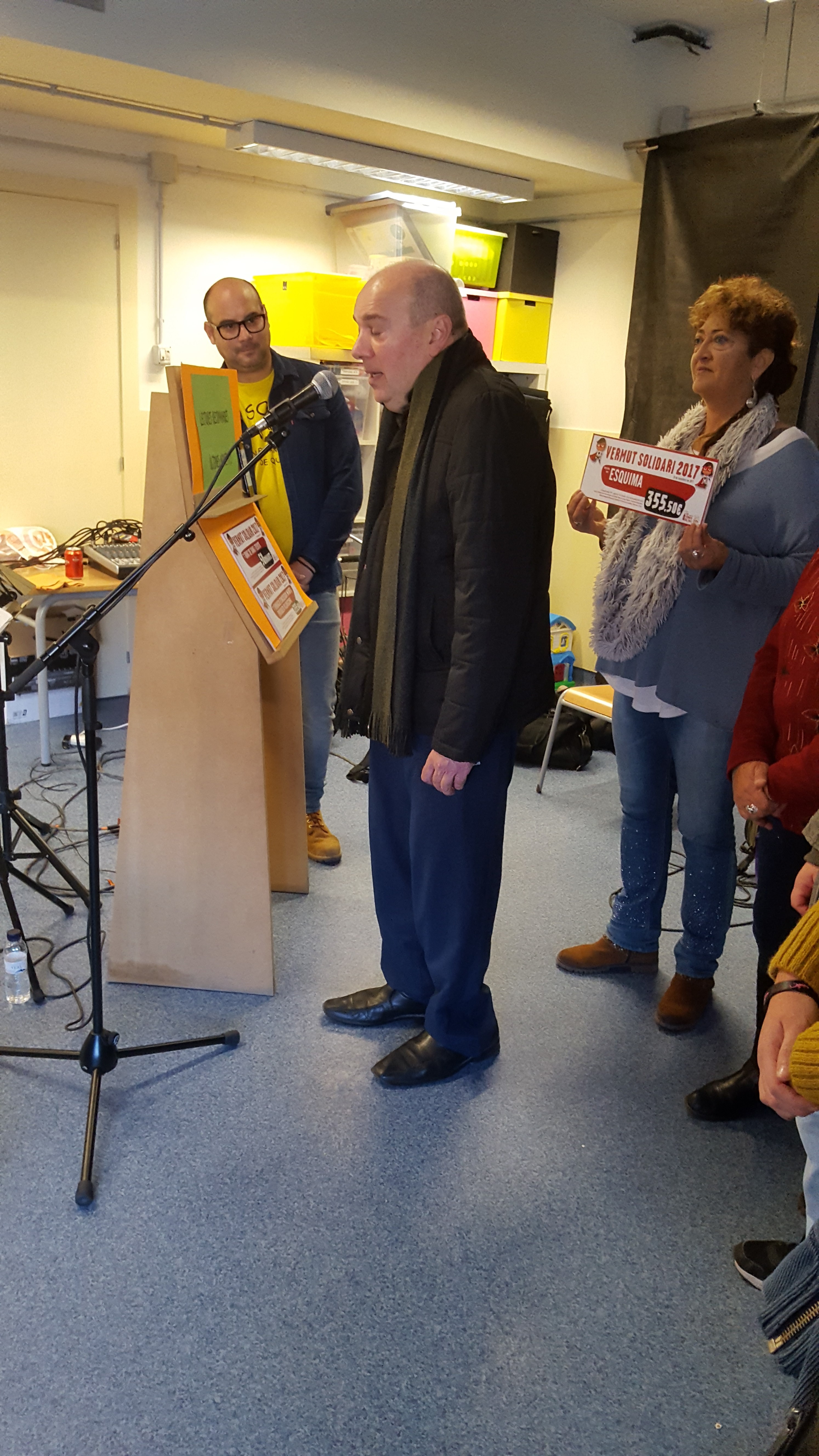 Cal dir que va tenir una segona part en la que vam tornar a compartir nadales i sent nosaltres solidaris amb el viatge de fi de curs dels alumnes, participant de la compra d’objectes nadalencs fets per ells i cantant amb els pares nadales. Ens van fer donació del xec simbòlic de 355 € resultat de la tòmbola. Moltes gràcies per haver pogut compartir un temps i un espai.