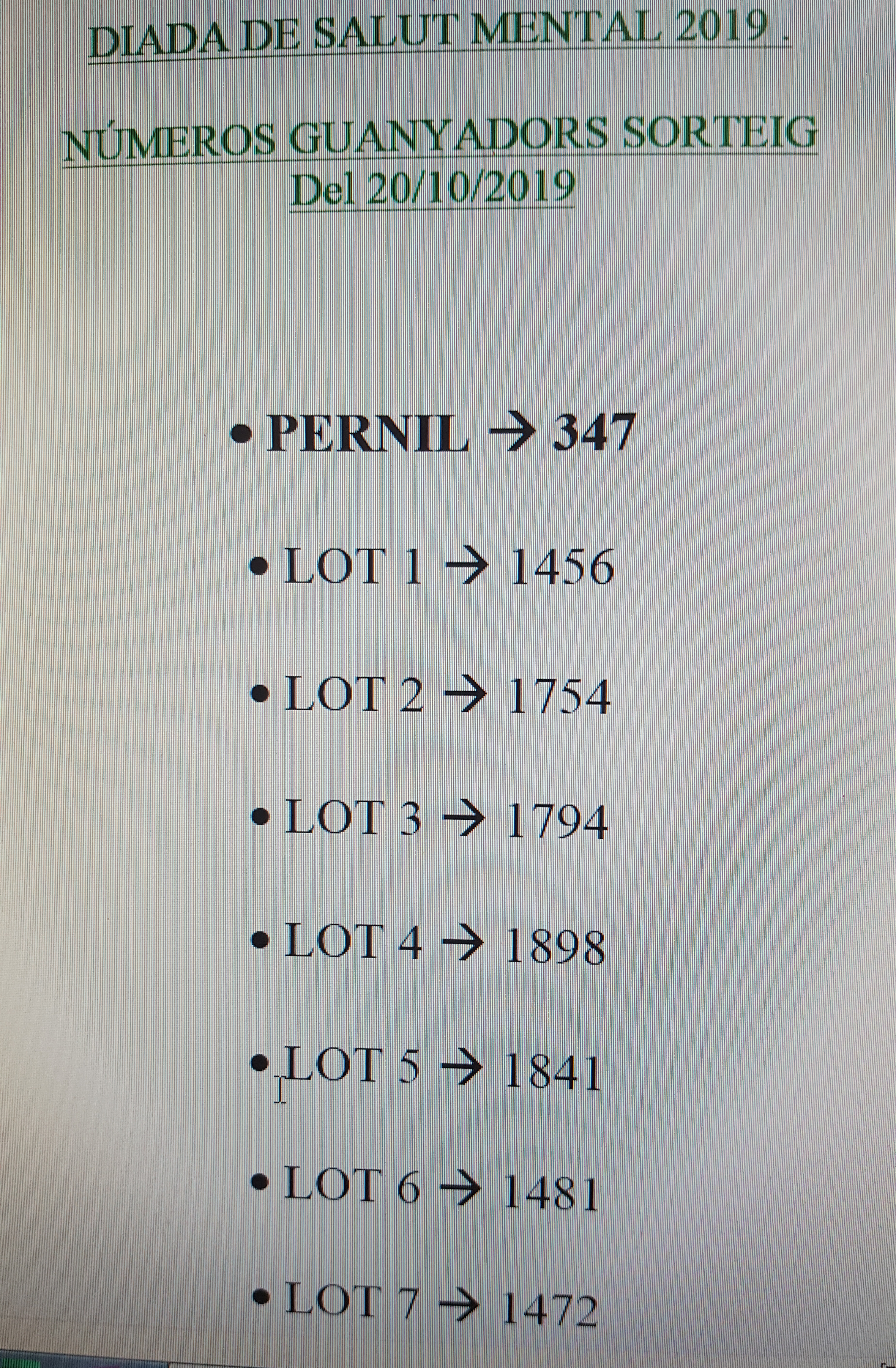 Sorteig de la Diada de salut mental del 20 d’octubre de 2019